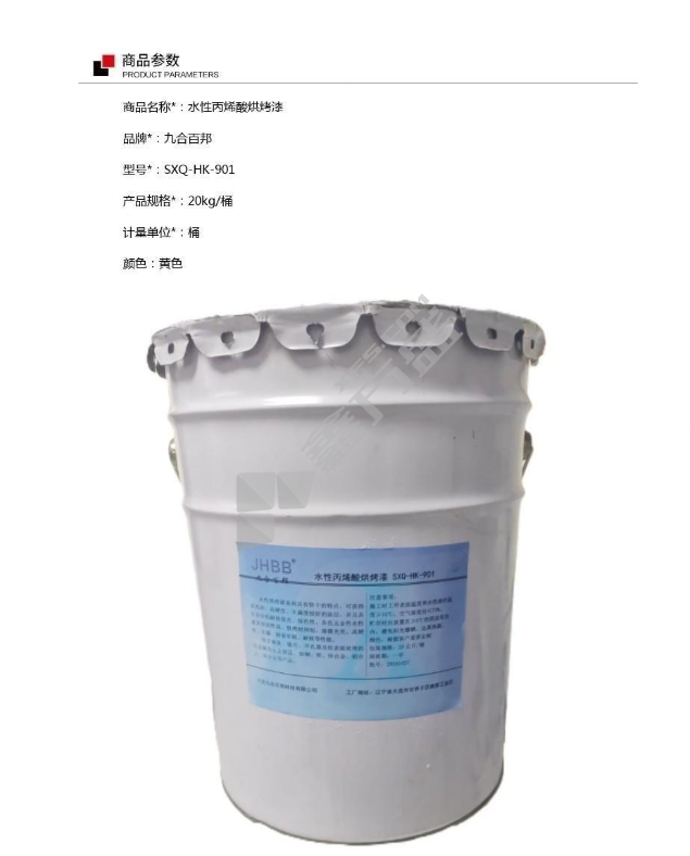 商品名称: 水性丙烯酸烘烤漆. SXQ-HK-901 20kg/桶.