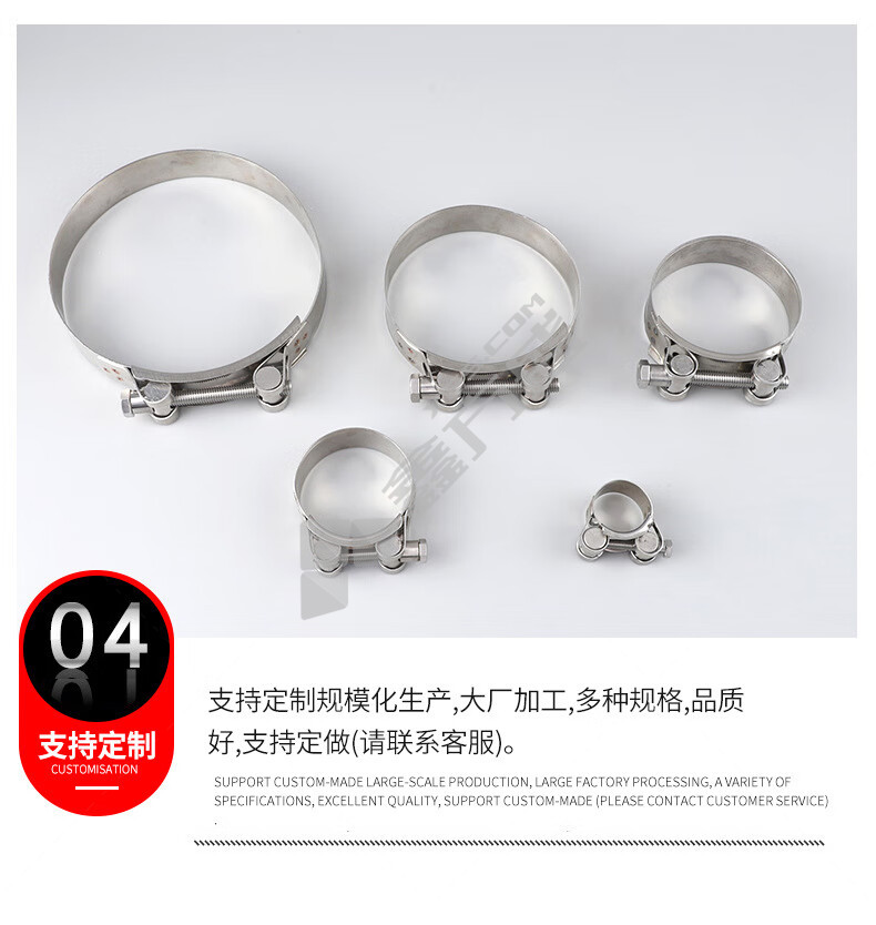 商品名称: 欧式抱箍. 直径范围:227-239mm 带宽26mm.