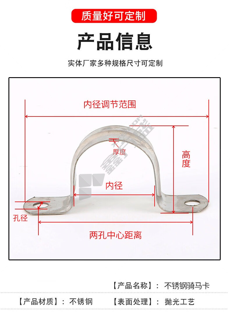 商品名称: 钢管卡子 U型卡. M22 带宽18mm.