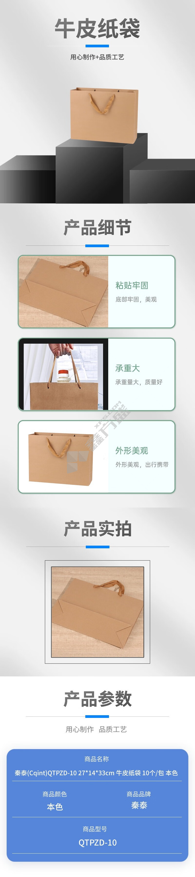 商品名称: 牛皮纸袋. QTPZD-10 27*14*33cm.