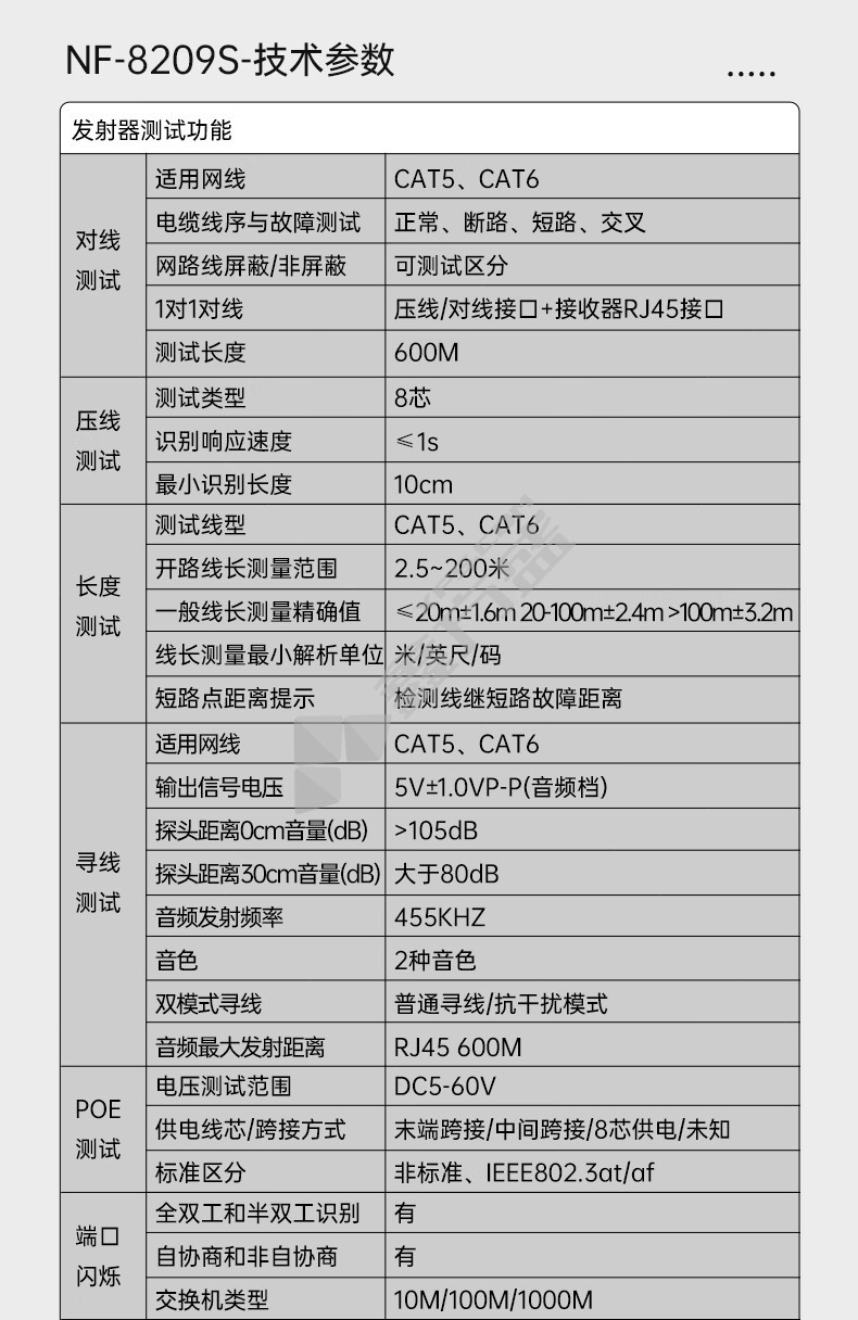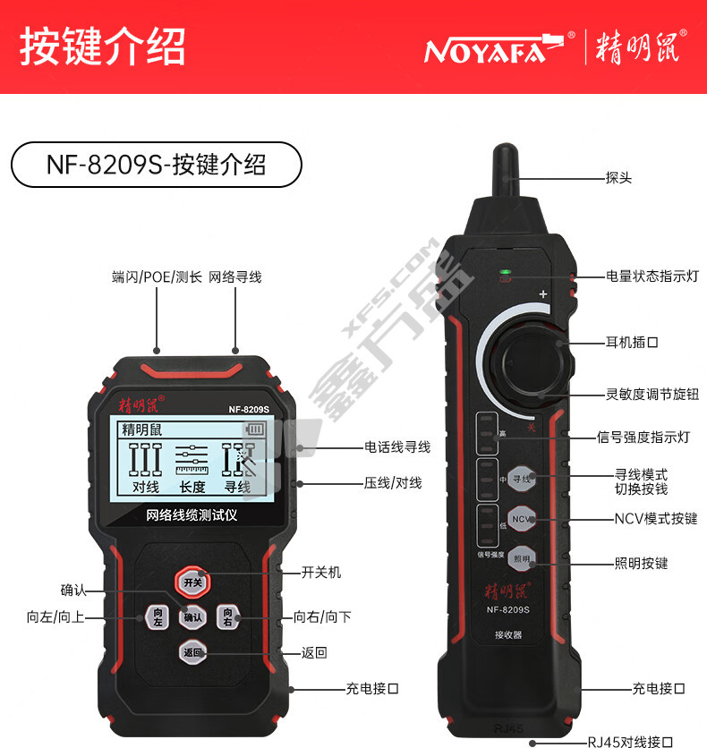 商品名称: 电路寻线仪. NF-8209S 双锂电+测电笔功能.