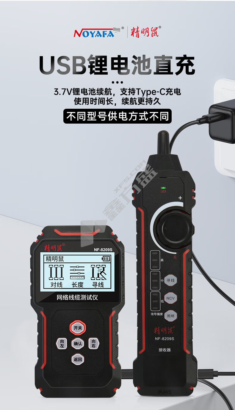 • 电路寻线仪. NF-8209S 双锂电+测电笔功能.