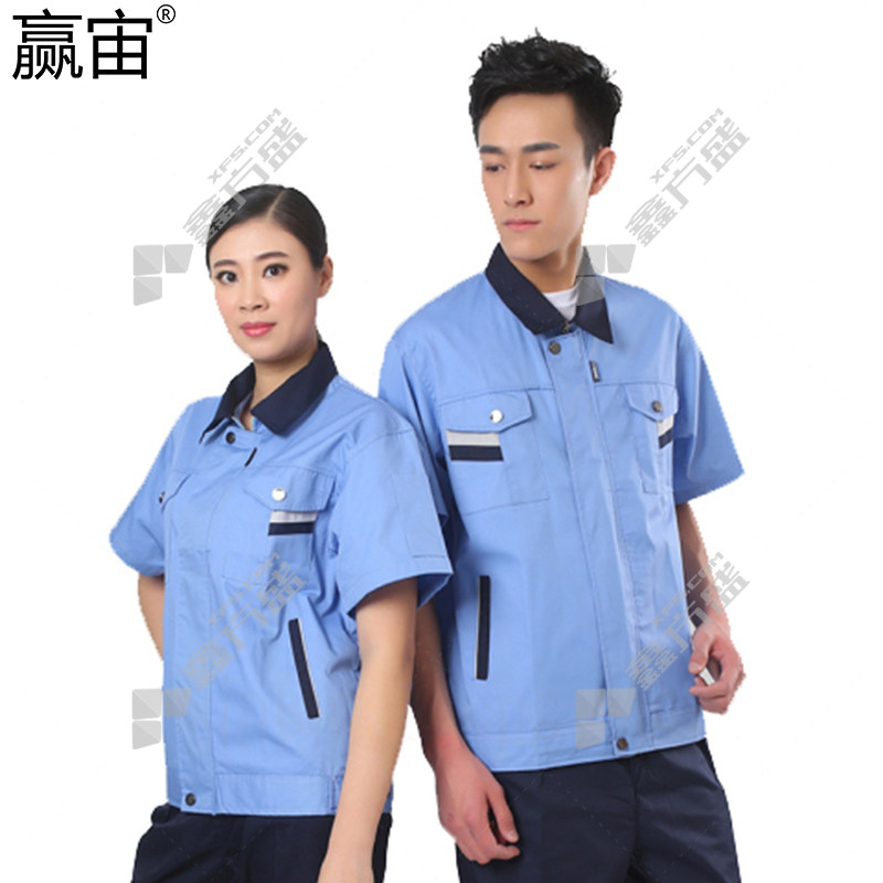 • 赢宙 GZ-116 夏季透气耐磨短袖工作服上衣 3XL 湖蓝色