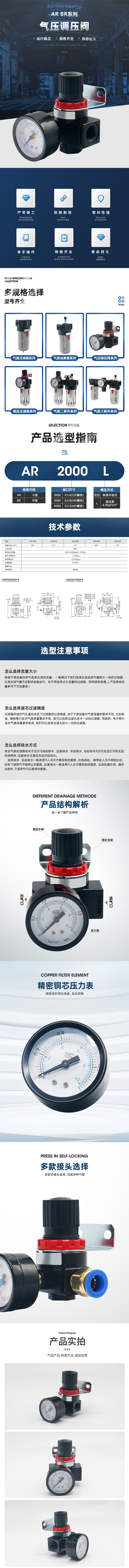 商品名称: 星浙气动 AR系列 标准手动式 气压调压阀 AR2000 1/4英寸 G1/4