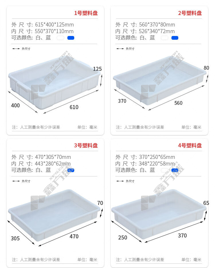 商品名称: 赢宙 可堆式塑料方盘 1号 615*400*125mm 550*370*110mm 蓝色 白色随机发货