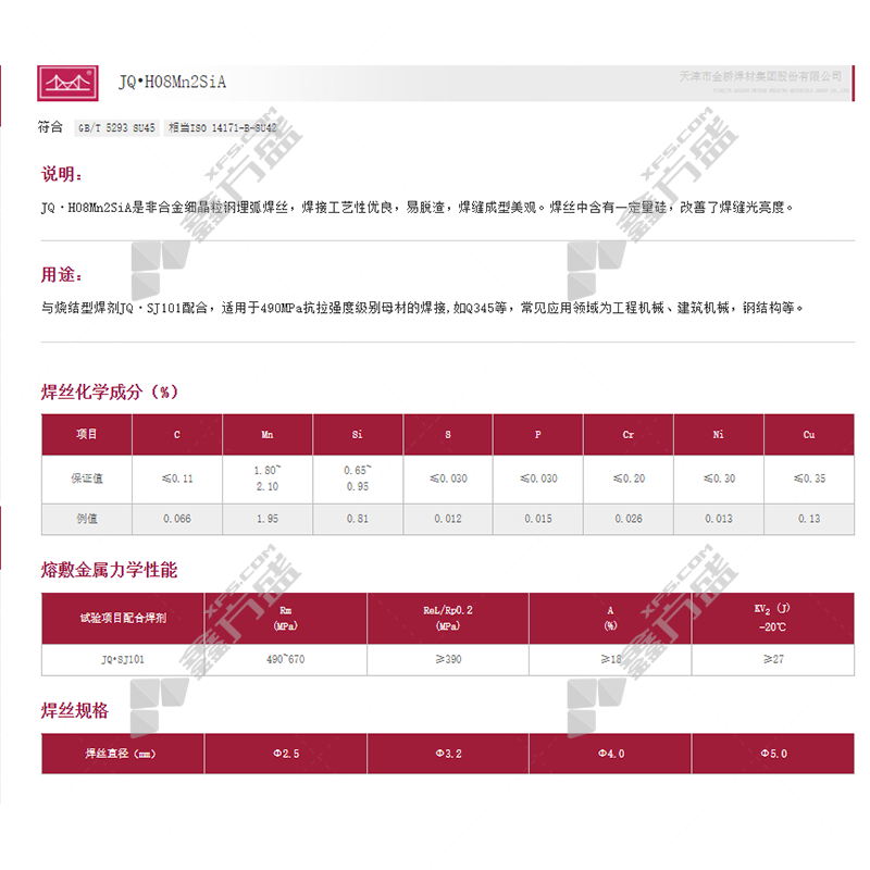 埋弧焊丝型号:JQ·H08Mn2SiA
