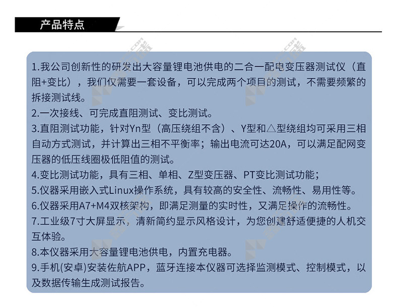 变压器测试仪电源规格:内置锂电池 容量7.8Ah