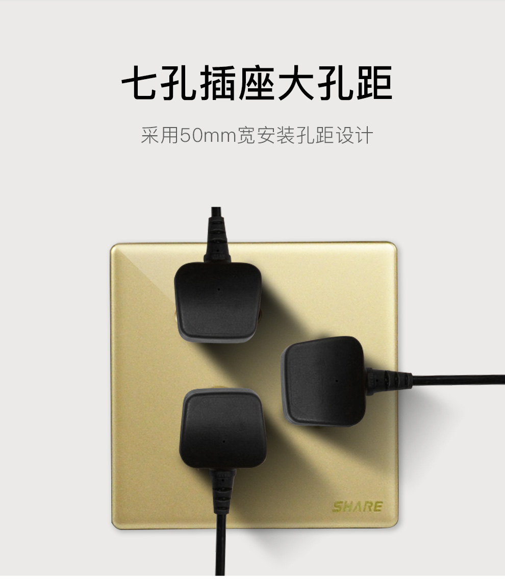 首页 首页 > 西野 三孔 有保护门 梦彩香槟金双控一开插座 86型 金色 10A 16A 220V