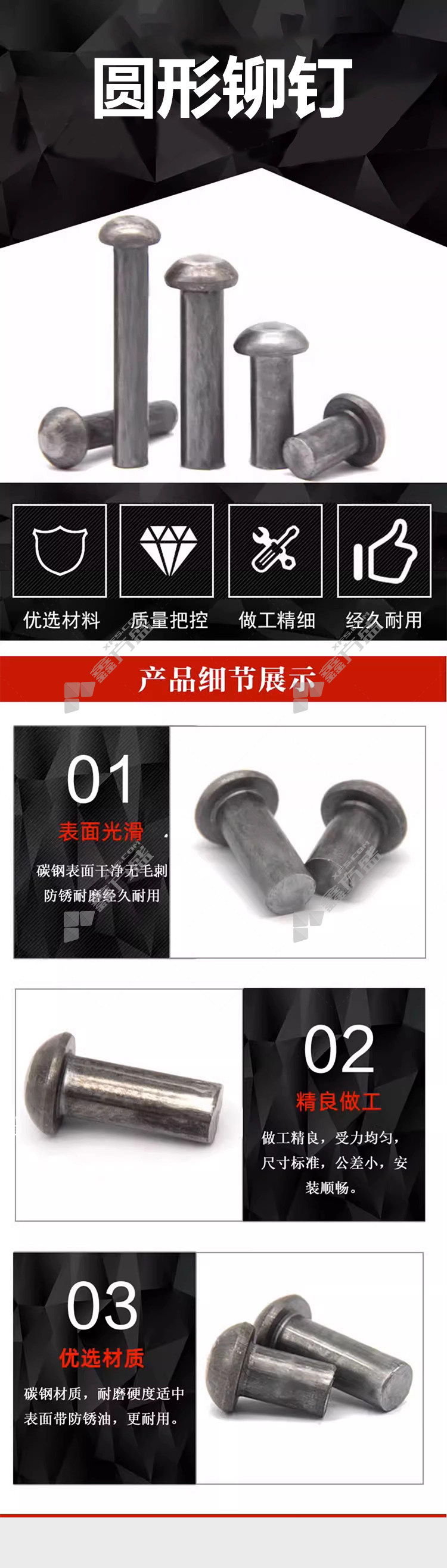 包装清单:圆头铆钉*1kg