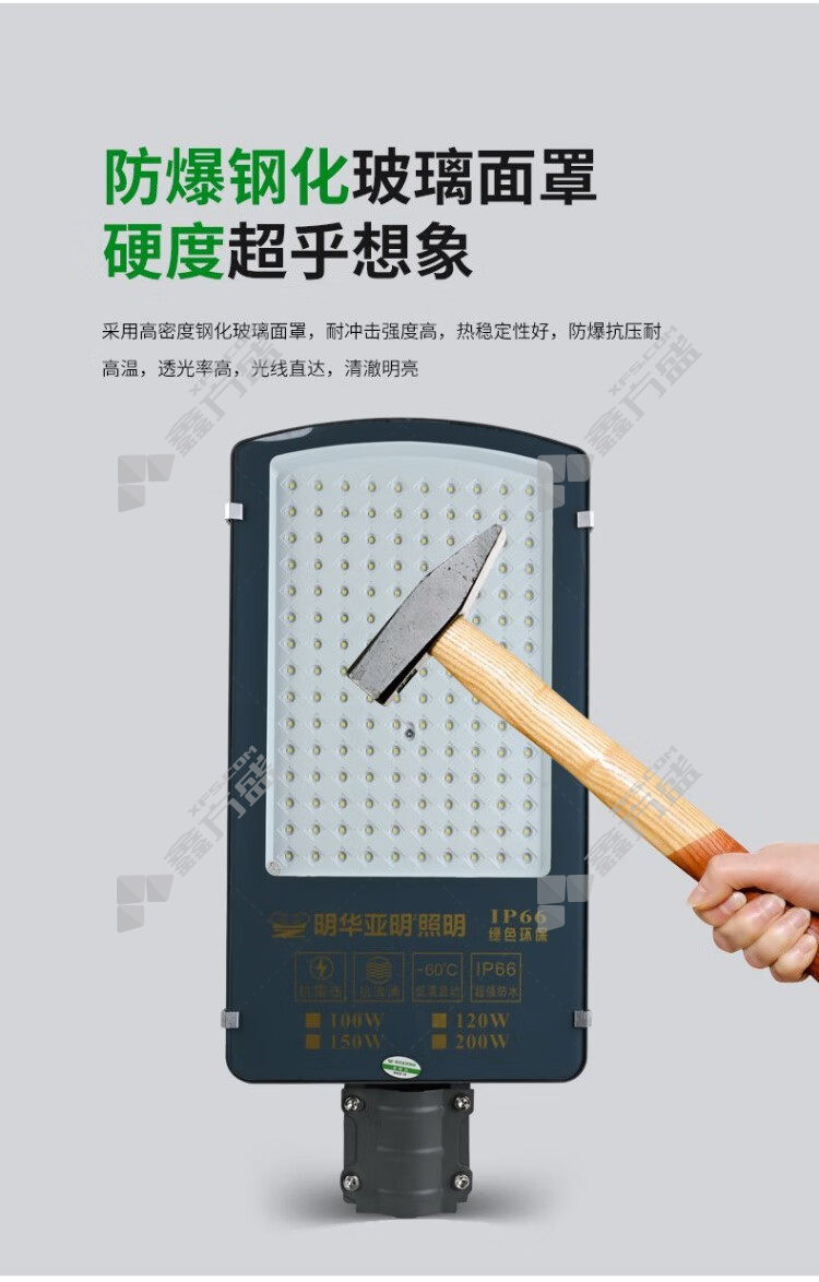 商品名称: 明华亚明 金豆系列 LED路灯头 MHJD-QD 100W 6500K 220V IP65