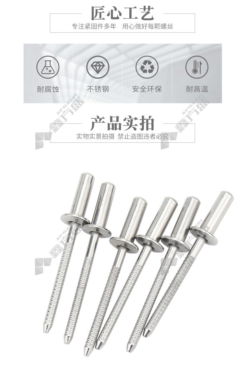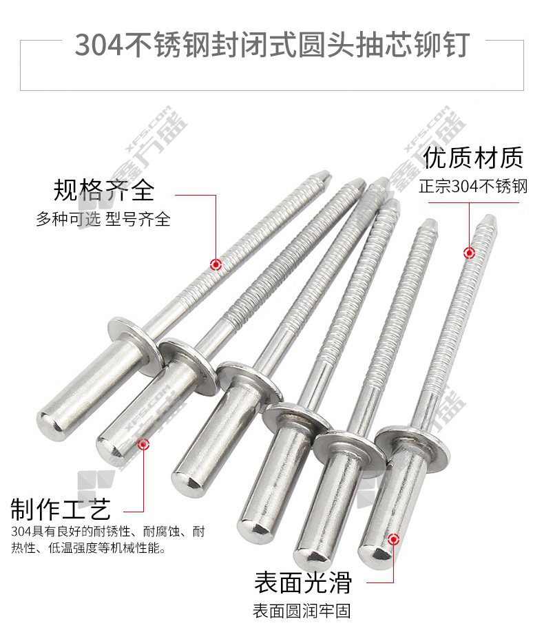 包装清单:封闭型平圆头抽芯铆钉*1百个