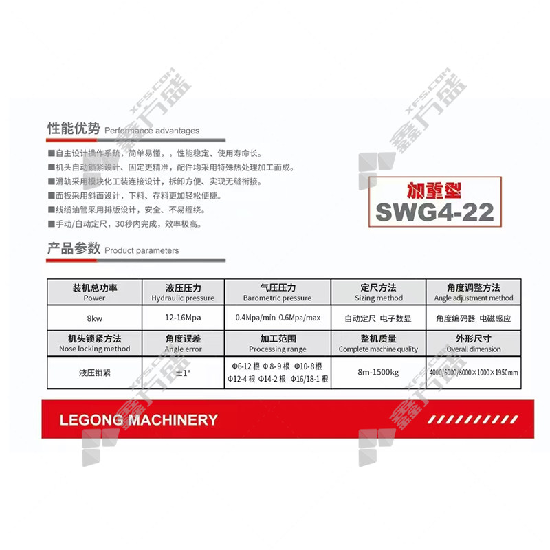 商品名称: 乐工 五机头弯箍机 SWG4-22 8kW 380V 6~18mm