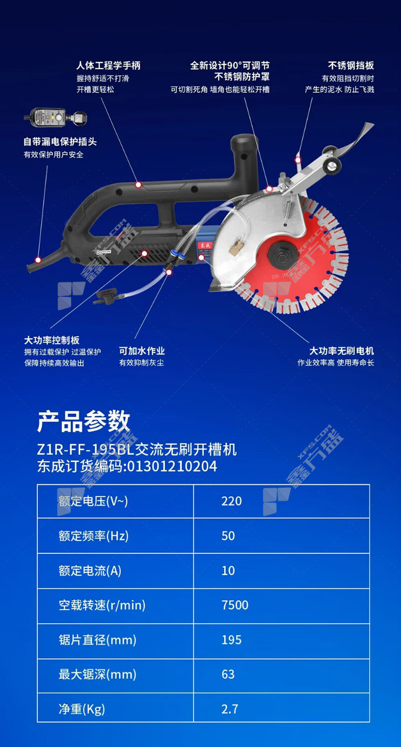 商品名称: 东成 无刷开槽机 Z1R-FF02-195BL 220V 2800W