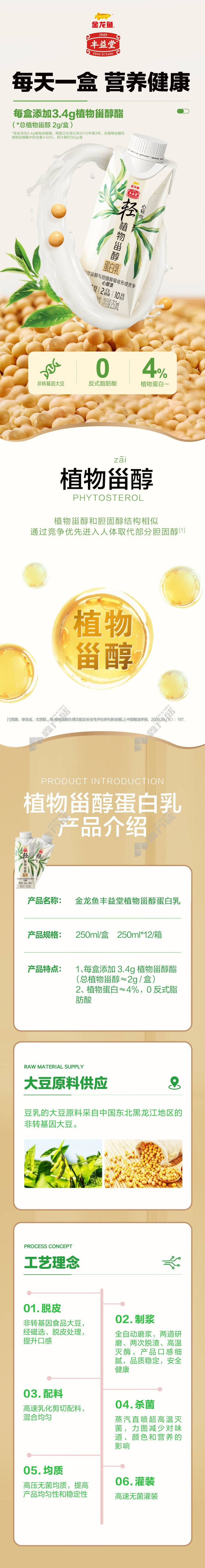 商品名称: 金龙鱼 丰益堂植物甾醇蛋白乳 250ml 原味 12瓶/箱