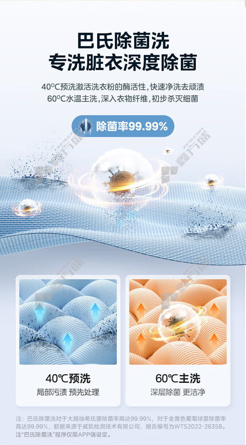 • 美的 MG100CG2023T 巴氏除菌洗健康除螨滚筒洗衣机 10kg 一级能效 金属钛