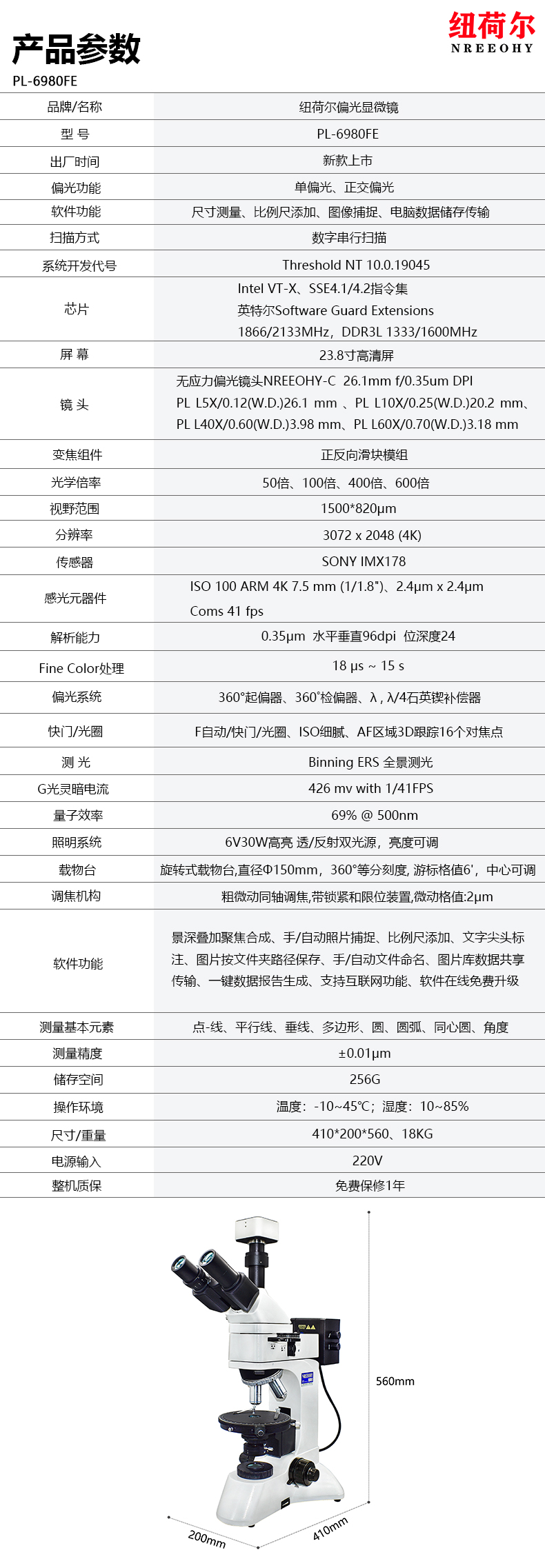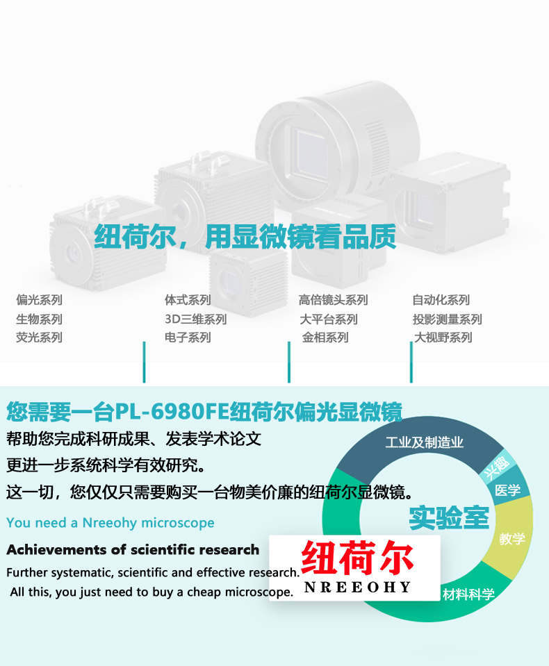 • 纽荷尔 偏光显微镜 50-600倍 PL-6980FE