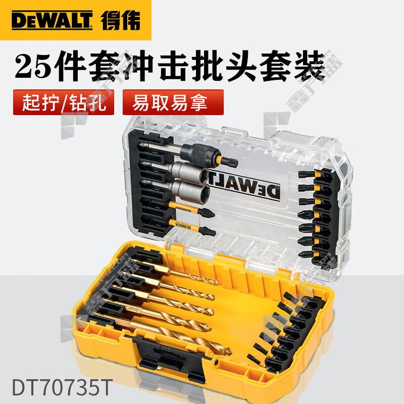 商品名称: 得伟 25件套磁性批头套装配套筒起子 DT70730T-QZ