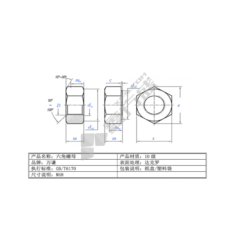 商品名称: 万谦 GB6170 碳钢 达克罗 10级 六角螺母 M48