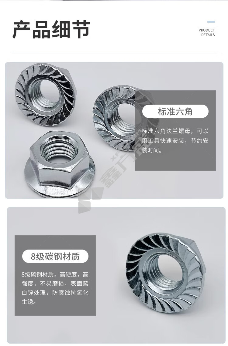 商品名称: 千鉴思 白锌 无齿 六角法兰螺母 M5