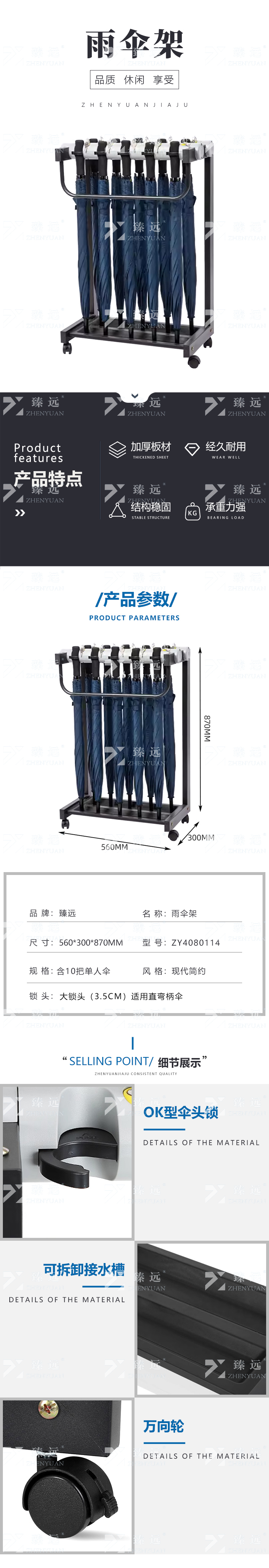 商品名称: 臻远 ZY4080114 带锁雨伞架含10把单人伞 560*300*870mm 10头 黑色