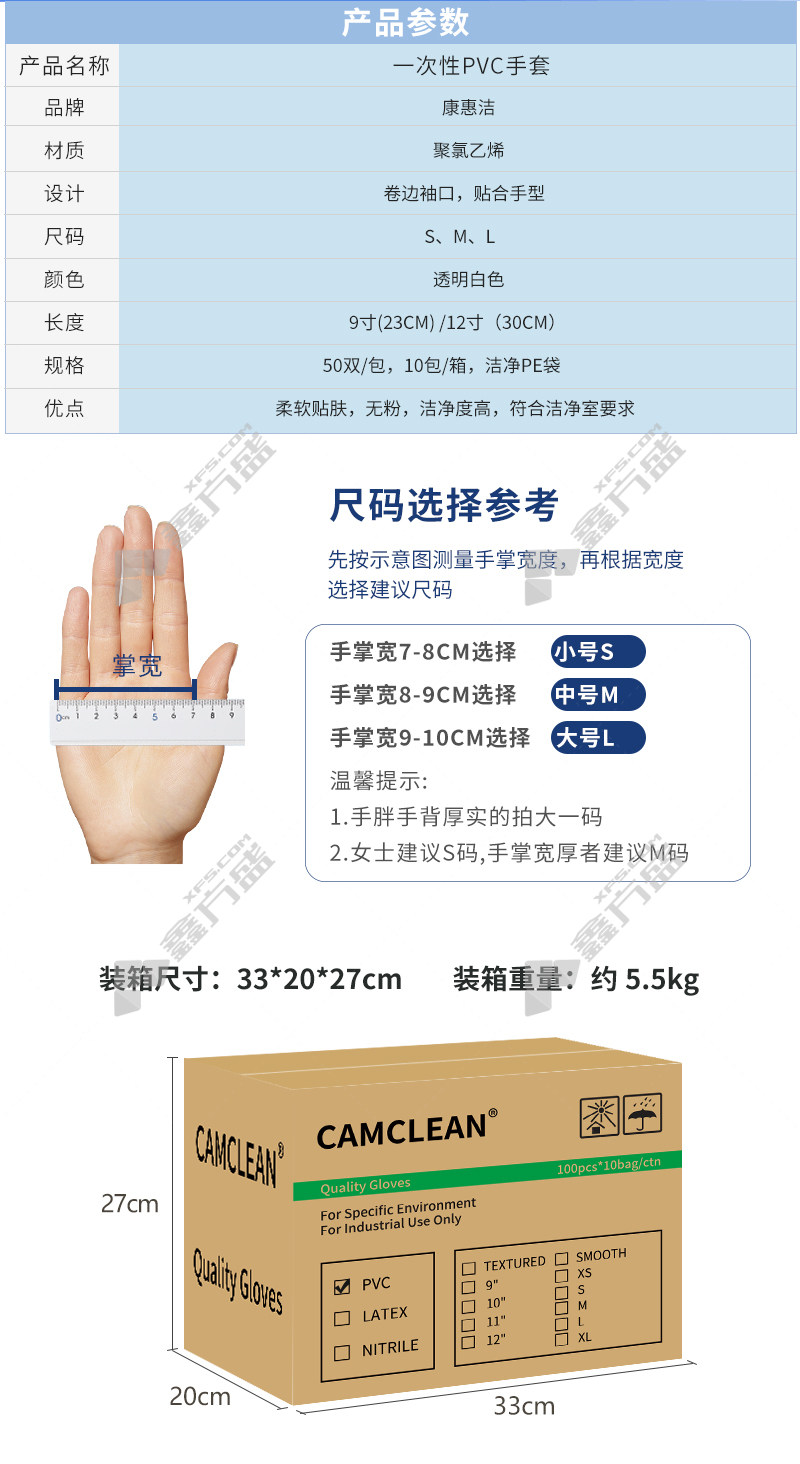 商品名称: 康惠洁 12寸PVC袋装手套 S 透明色