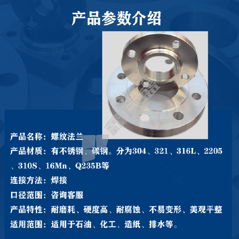 商品名称: A60.3 钢坯制镀锌丝扣法兰盘 DN50/1.0MPa/4孔