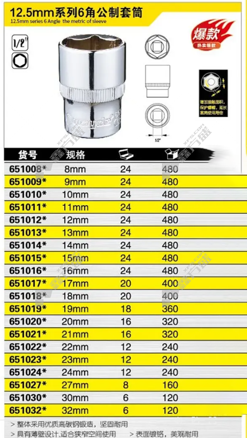商品名称: 韦德 WAYDE 12.5mm系列 六角套筒头 10mm 40mm 651010
