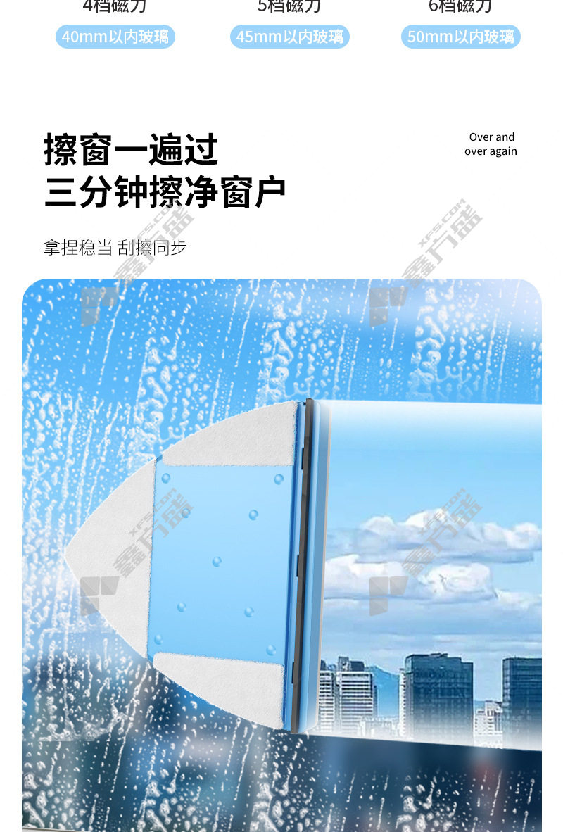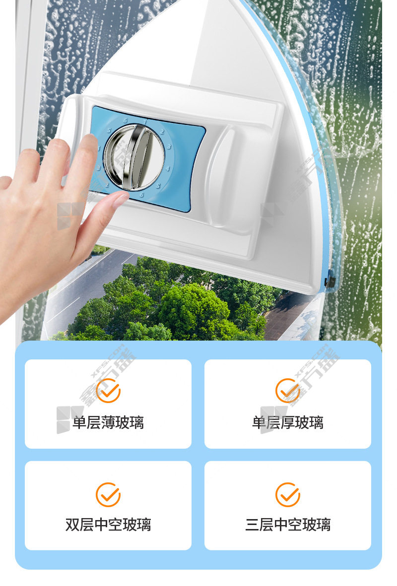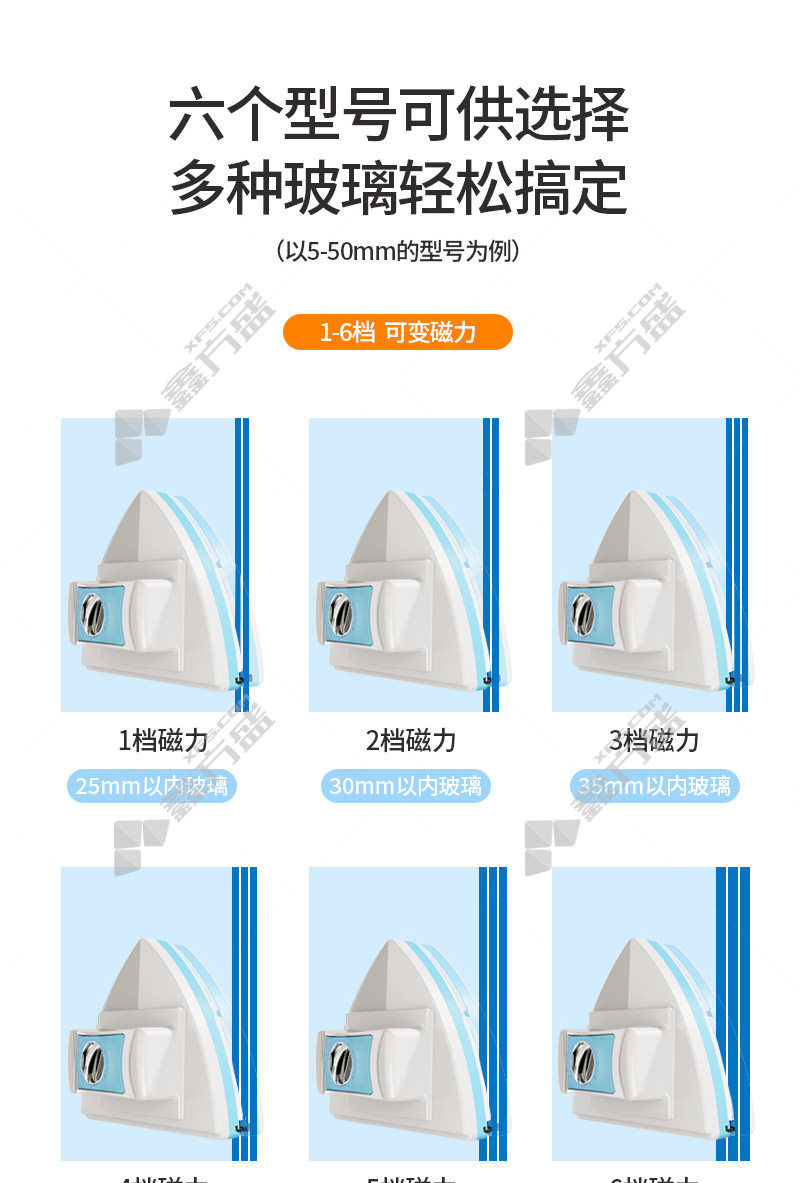 佛羅倫 铭雅可调磁玻璃擦 16*13.2*14.3cm/5-25mm 蓝白色
