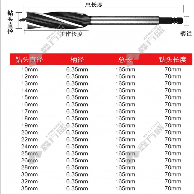 商品名称: 赫力斯 木工四槽四刃支罗钻 70mm 18mm