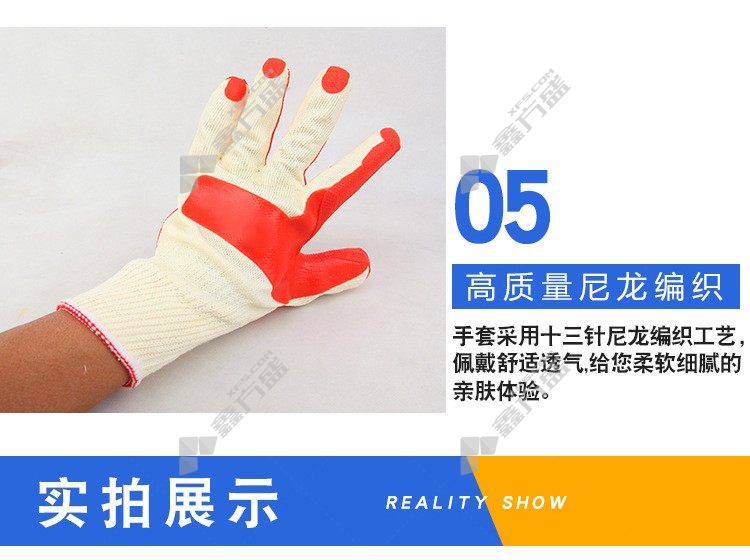 商品名称: 赫力斯 L258 软胶片手套 L码 白红色