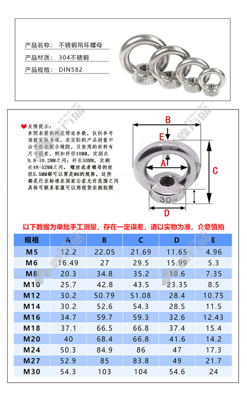 包装清单:吊环螺母*1包