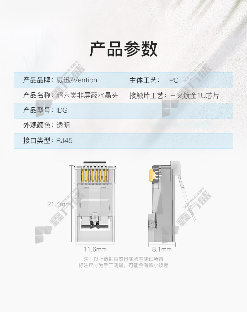商品名称: 威迅 非屏蔽水晶头 8P8C IDGRO-50 超六类