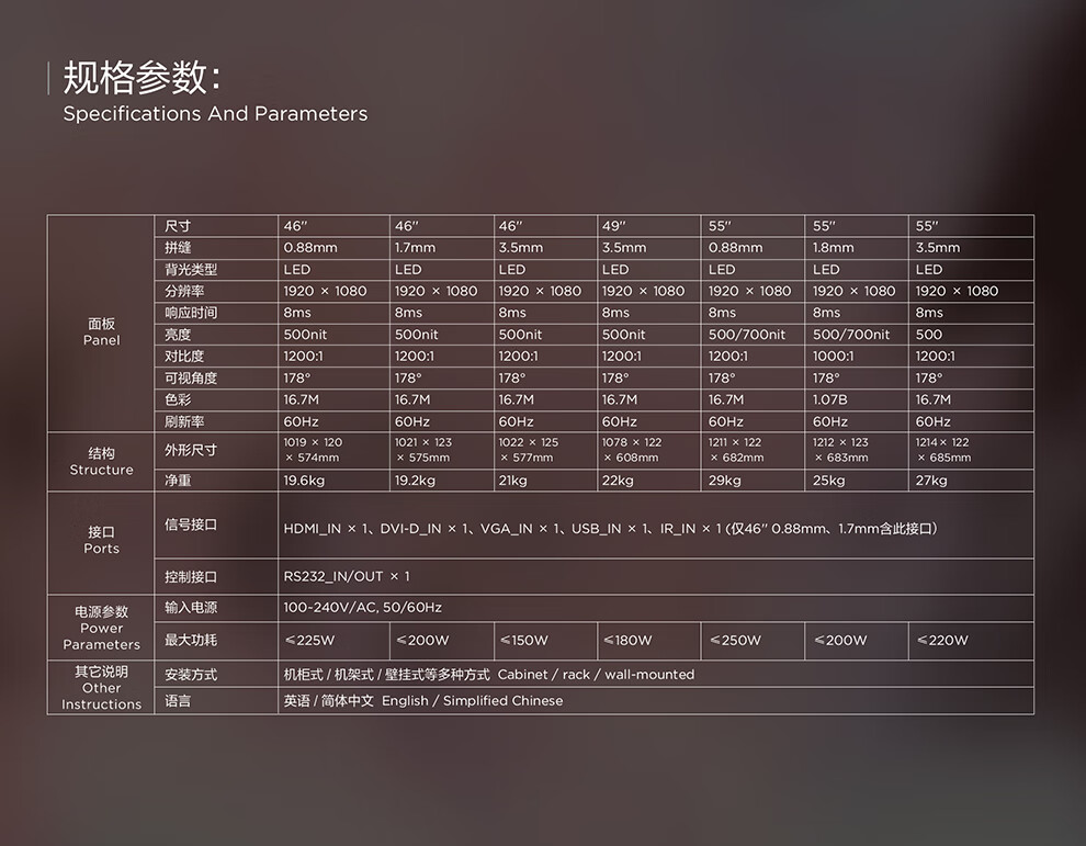 京东方 1.7mm拼缝液晶拼接屏 BVW46-B52D 46寸 1920*1080px