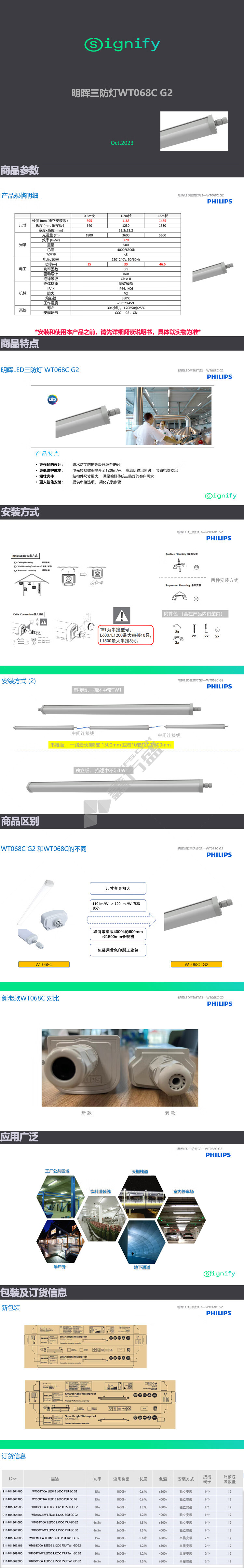 商品名称: 飞利浦 PHILIPS飞利浦LED一体化三防灯WT068C 1.2米30W冷白光6500k. WT068C 30W 6500K.
