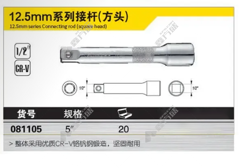 商品名称: 韦德 WAYDE 12.5mm系列 方头镜面短接杆 081105 1/2*5"