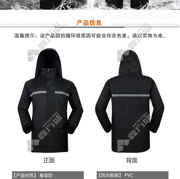 商品名称: 赫力斯 春亚纺 分体式 雨衣雨裤套装 XL 黑色