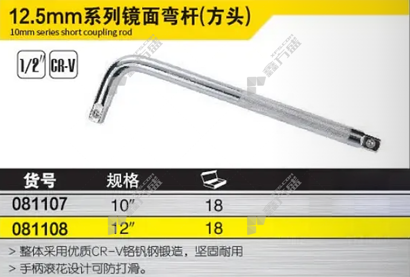 商品名称: 韦德 WAYDE 12.5mm系列 方头镜面弯杆 081107 1/2*10"