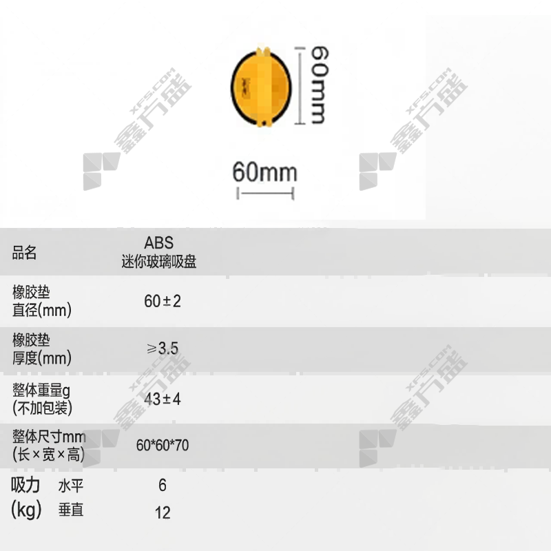 玻璃吸盘材质:全新ABS盘体 天然橡胶盘底