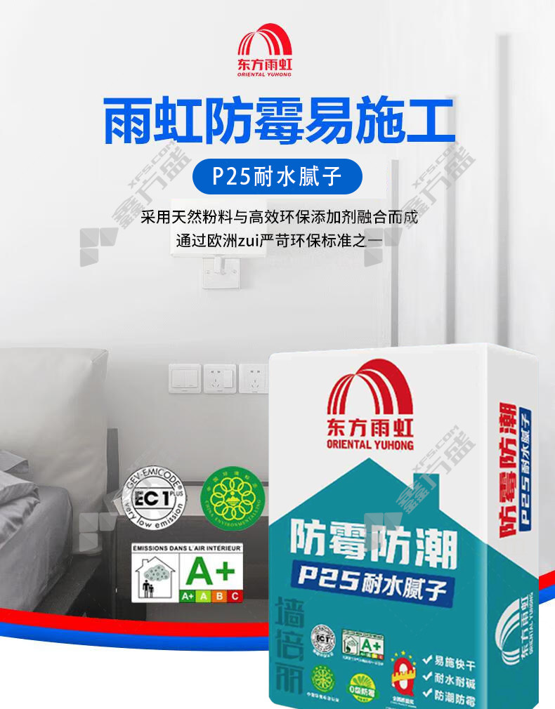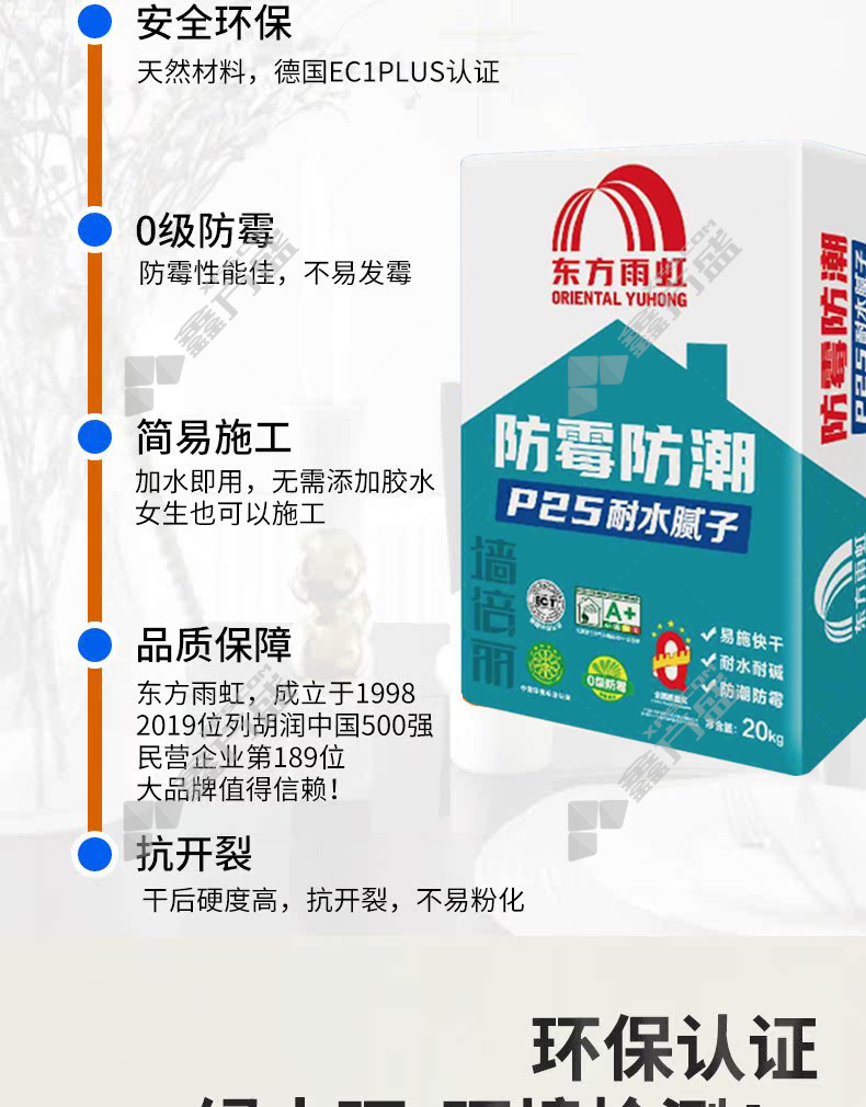 商品名称: 东方雨虹 墙倍丽 P25防霉防潮耐水腻子 20kg 白色