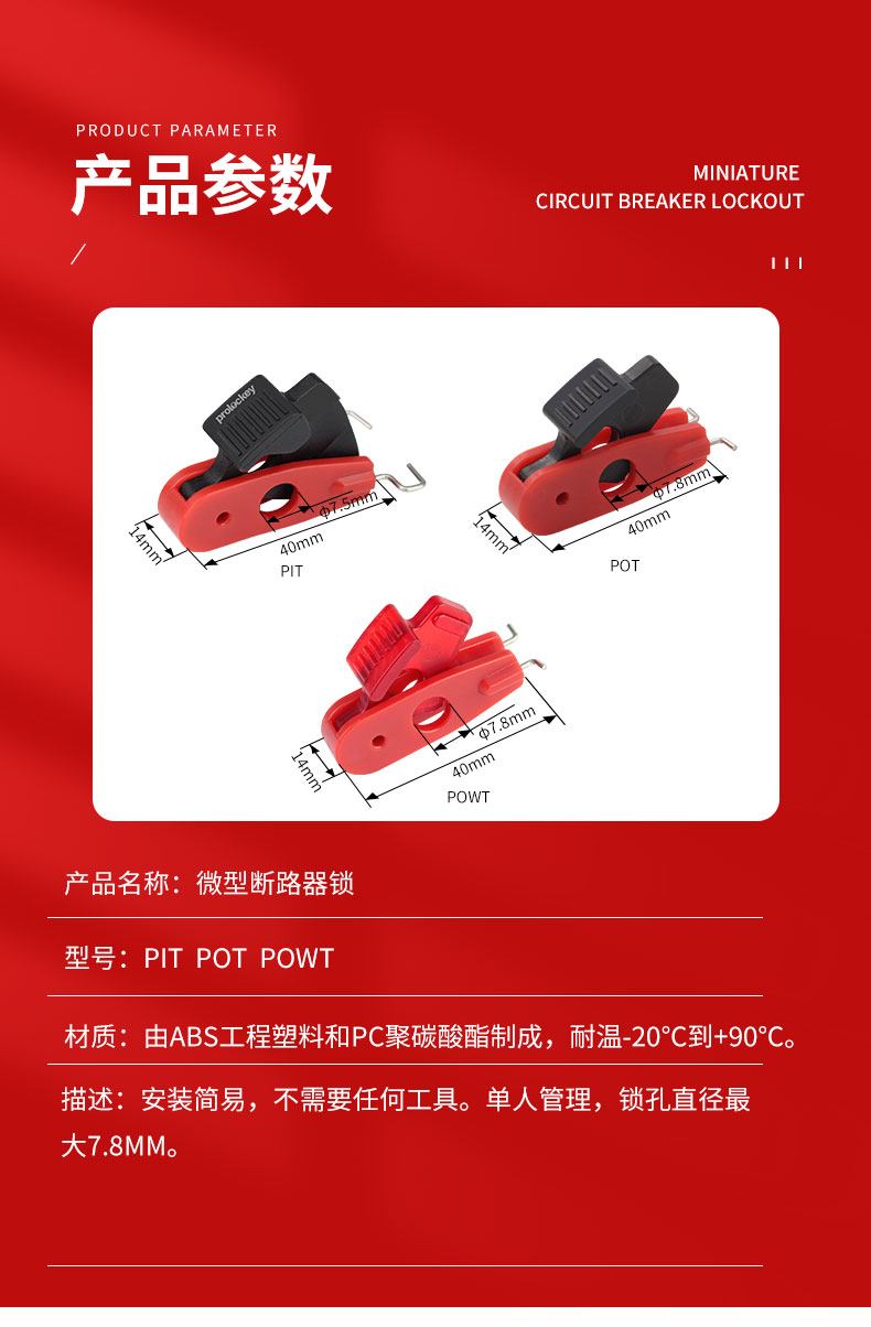prolockey 塑料 微型断路器锁 PIS 孔距≤10mm 红色 不通开