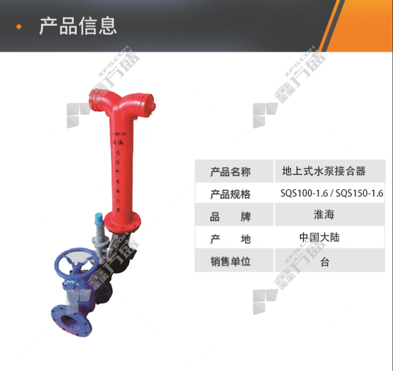 商品名称: 淮海 地上式水泵接合器 SQS150-1.6 1.6MPa