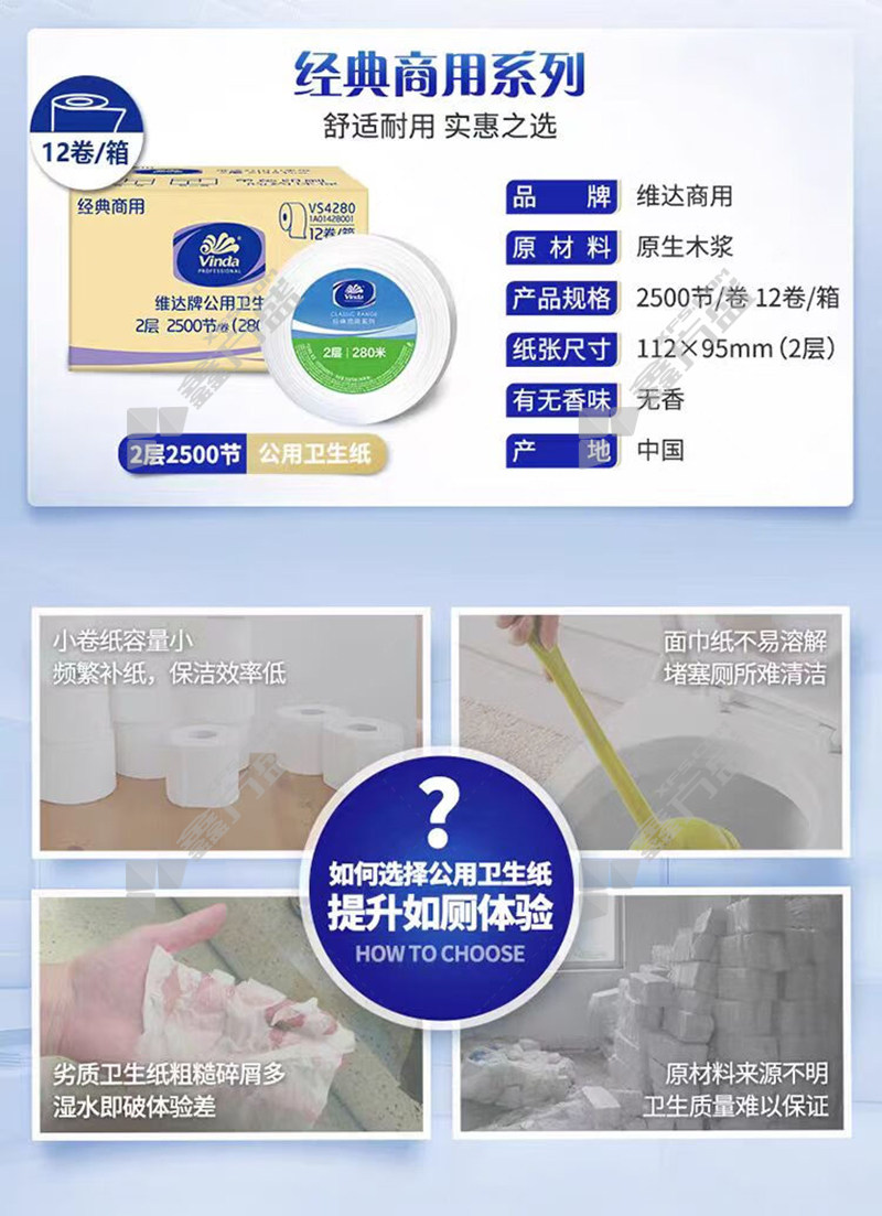 • 维达 VS4280 商务大盘纸 2层 112*95mm 2500节 2500节/卷 12卷/箱