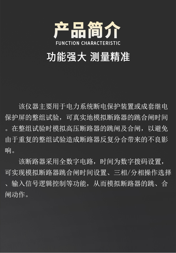 包装清单:模拟断路器测试仪*1台、测试线*1套、充电器*1个、说明书*1份