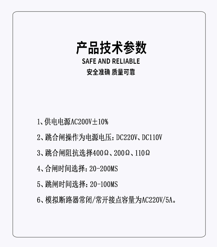 商品名称: 盟易测 模拟断路器测试仪 UNITA-K190M 20-200ms 5A