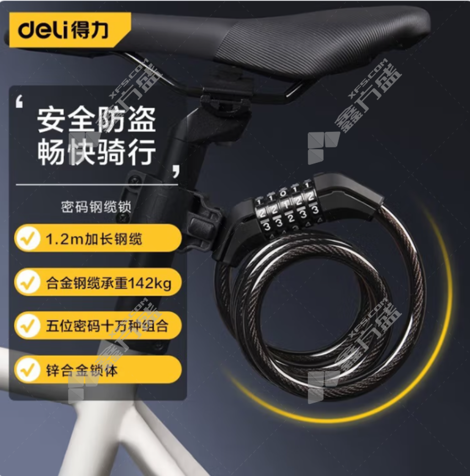 商品名称: 得力 黑色钢缆锁 DL508011/1.2m