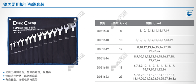 商品名称: 东成 镜面两用扳手布袋套装 D051614 14件