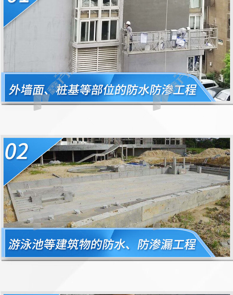 防水砂浆应用场景:建筑外墙墙面、路桥等