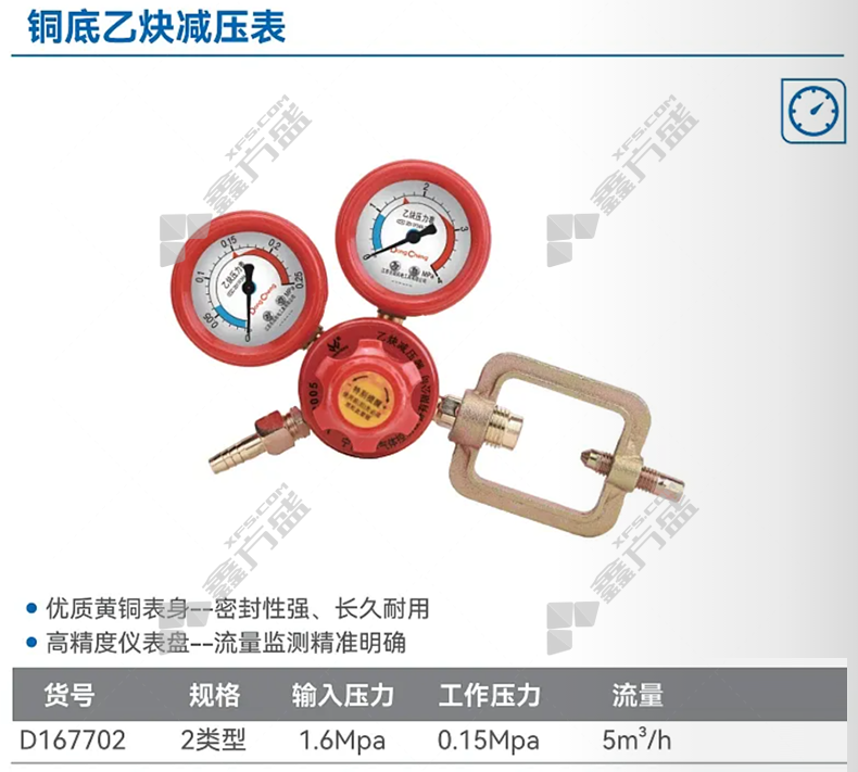 商品名称: 东成 铜底乙炔减压表 D167702 1.6MPa 0.15MPa