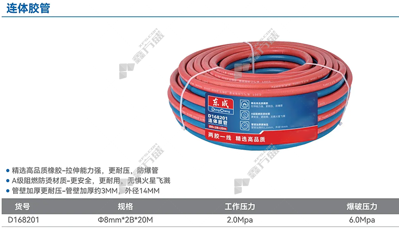 商品名称: 东成 连体胶管 D168201 蓝红色 2.0MPa Ф8mm*2B*20m