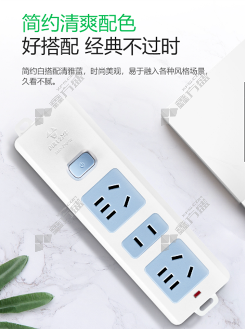 商品名称: 公牛 2位五孔+1位两孔 新国标插排 GN-606(F) 10A 总控开关 10m 白蓝色